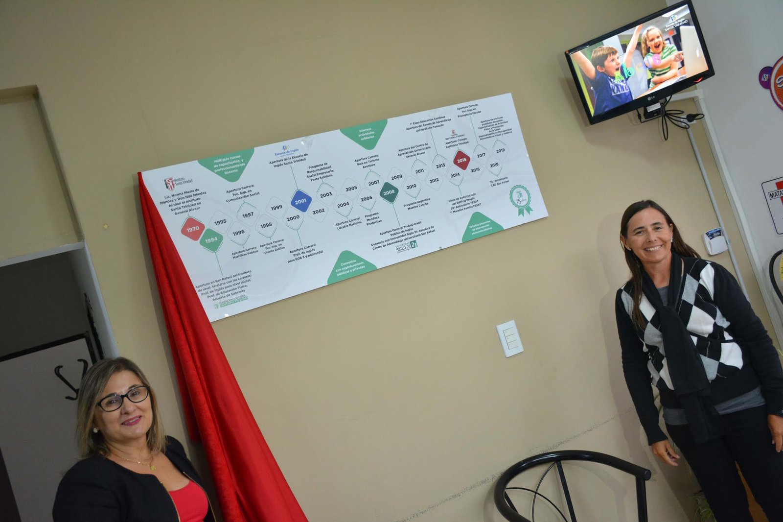 | El equipo directivo descubriendo la gráfica de la historia institucional |