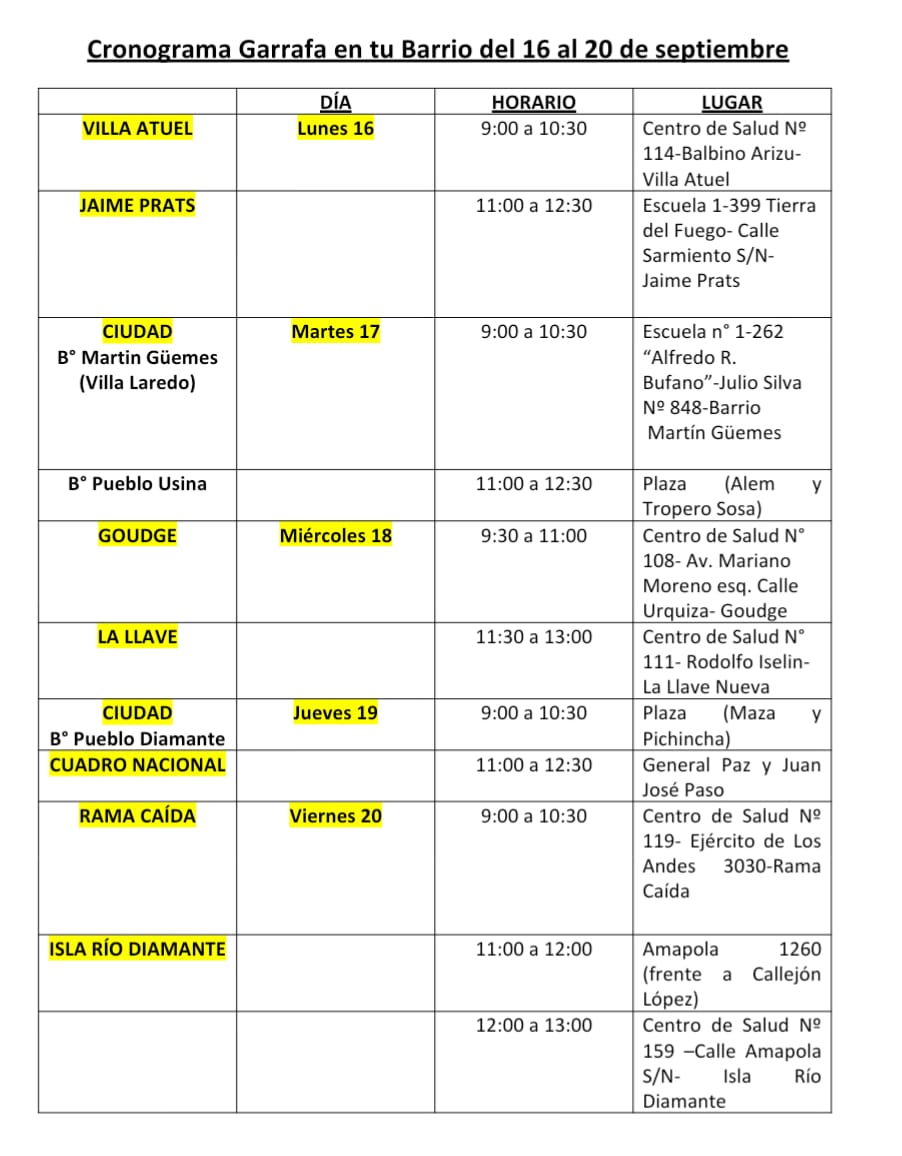 El operativo del Gobierno de Mendoza, a través de la Subsecretaria de Desarrollo Social, continuará esta semana en nuestro departamento, desde hoy hasta el jueves 20 de setiembre.