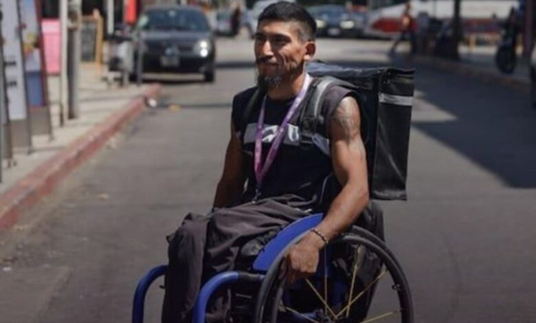 La historia de Leo, el delivery que recorre la Ciudad en silla de ruedas para mantener a su hijo