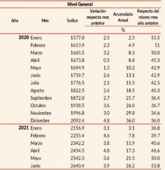 El Índice de Precios al Consumidor (IPC) tuvo una variación mensual del 3,9% y sumó un acumulado anual del 26,2% durante el primer semestre del 2021. El ritmo se muestra mucho más acelerado que en 2020 cuando, durante los primeros seis meses del año, solo alcanzó el 13,1%.
