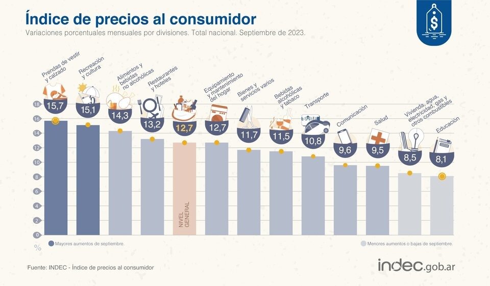 La inflación fue del 12,7% en septiembre y acumula 138,3% anual