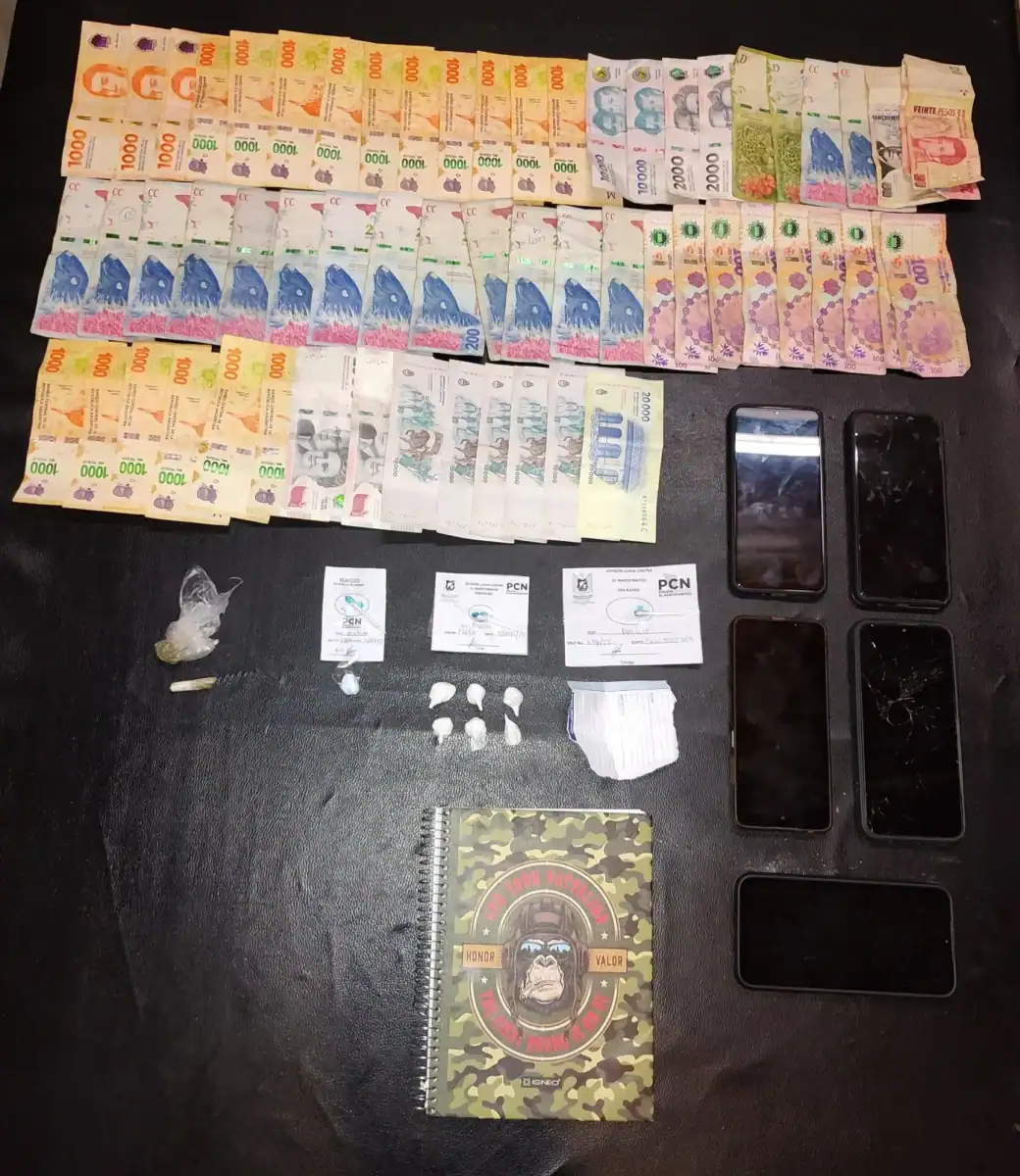 En el lugar fue detenida una mujer de 43 años, identificada como V.P.B., quien ya se encontraba cumpliendo prisión domiciliaria por otra causa de venta de drogas. Durante la intervención se incautaron: