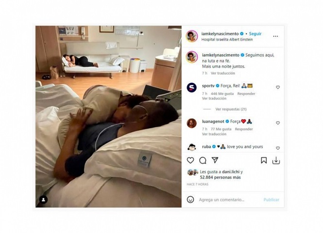 En medio de la lucha de Edson Arantes do Nascimiento para vivir, los rumores sobre su muerte no han parado de crecer y su hija, Kelly Nascimiento, ha compartido en las redes una foto en la que se la ve abrazada a la leyenda brasileña asegurando que “Seguimos aquí, en la lucha y en la fe. Una noche más juntos”.