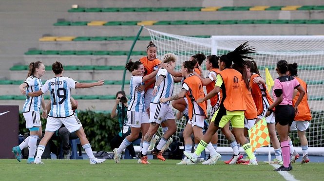 Además de los goles de Rodríguez, para la Albiceleste anotaron la experimentada Estefanía Banini y la lateral Eliana Stabile en el estadio Centenario de la ciudad colombiana de Armenia, con lo que el equipo de Germán Portanova llegó a seis puntos y es provisionalmente segundo por detrás de Brasil, que tiene la misma cantidad de unidades (6), pero un juego menos.