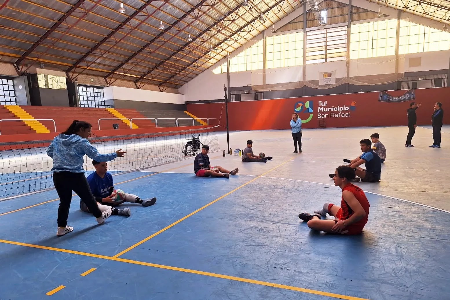 La selección de vóley adaptado de visita en San Rafael