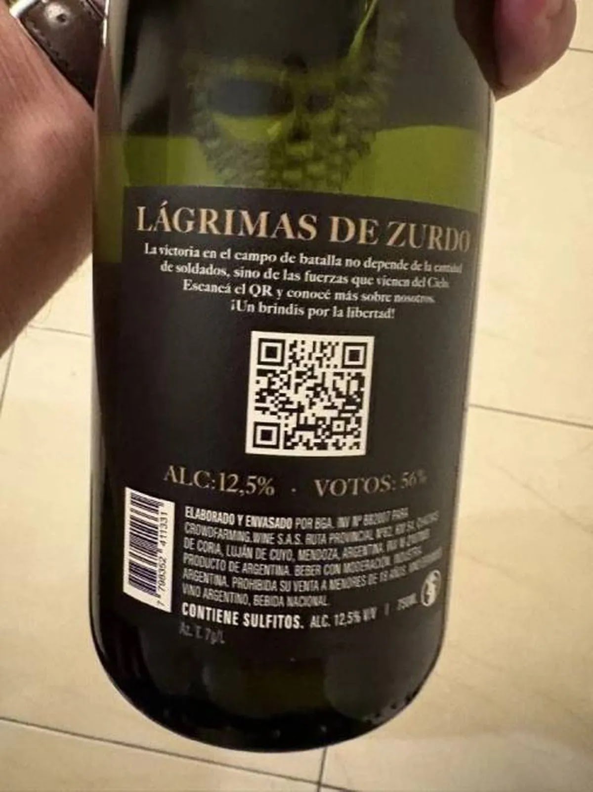 “Se viene el fin de año y queremos que todos nos merecemos brindar como corresponde. Por eso tuvimos que crear el espumante ‘Lágrimas de Zurdo’, para que todos puedan brindar por la Libertad. Ha sido un año extraordinario de cosecha y cada uno de los ‘zurdos’ ha colaborado llorando desde su lugar”, expresa el productor del vino en la página web oficial de la bodega.