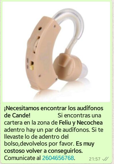 Este miércoles una mujer sufrió el robo de su cartera, en el que se encontraban los audífonos de su hija. Ahora Defensa Civil pide la colaboración de la comunidad a través de un comunicado que hizo llegar a los medios para que los mismos aparezcan.