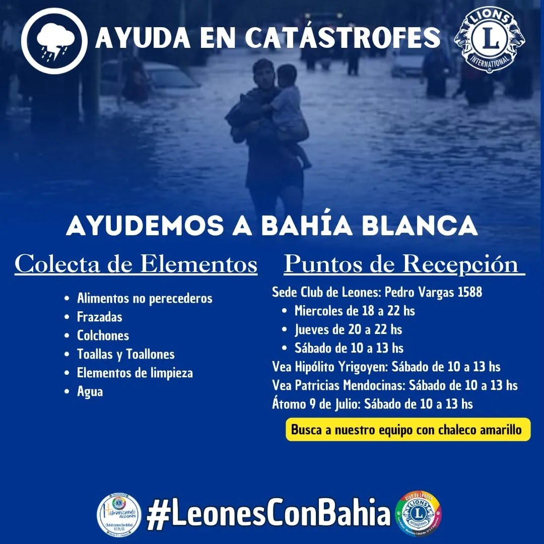 El Club de Leones San Rafael lanzó una importante campaña de Ayuda en Catástrofes con el objetivo de colaborar con Bahía Blanca en estos momentos difíciles.
