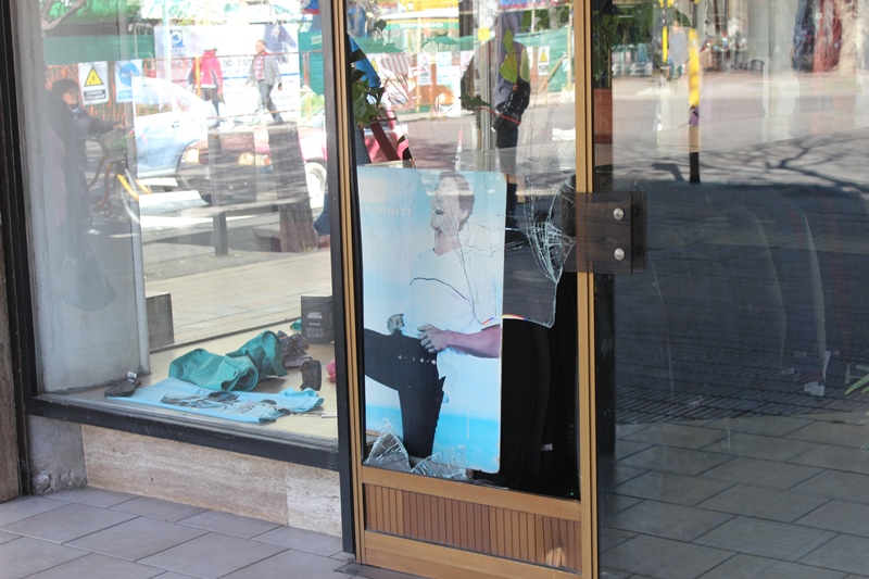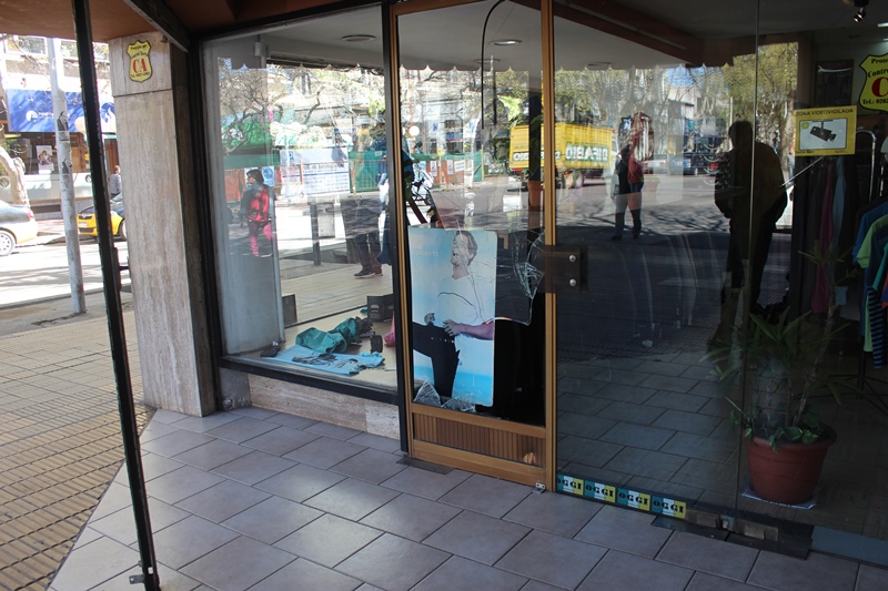 Con claro sentimiento de desesperanza en la voz, Daniel Pueyo, comerciante que trabaja en el lugar, explicó que es la tercera vidriera que deberán reponer en poco más de un mes. En la madrugada de este jueves, aproximadamente a las 4, se activó la alarma por el piedrazo que le dieron al vidrio y el dueño del local partió hacia allá, aunque ya no pudo hacer nada.