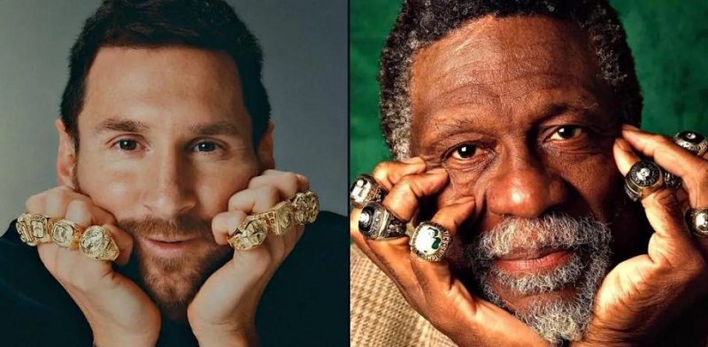El objetivo de la marca con los ocho anillos que le regaló a Lionel Messi fue compararlo con Bill Russell, máximo ganador de título de la NBA, que tiene 11 anillos.