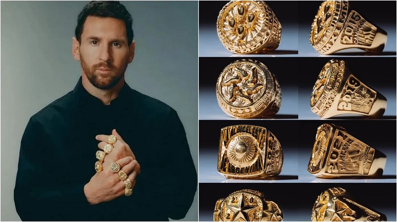 Lionel Messi volvió a consagrarse como el gran ganador del Balón de Oro y la marca que lo viste (Adidas) decidió hacerle un homenaje especial, con un guiño a la NBA. Es que la firma alemana, que representa al crack argentino, le obsequió ocho anillos personalizados.