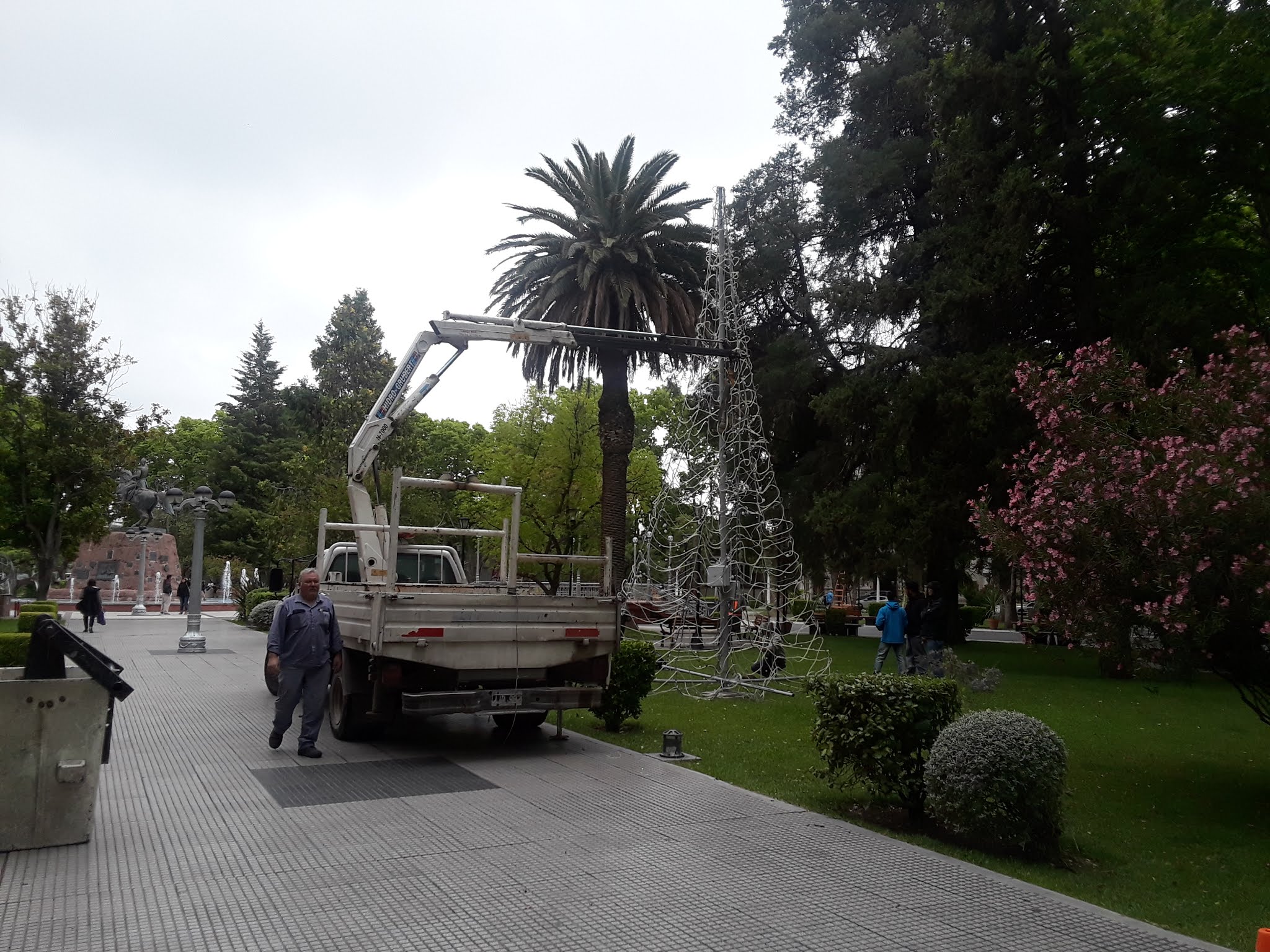 Se acercan las fiestas y San Rafael comienza a decorarse con aires navideños. La plaza San Martín no es la excepción. Es por eso que, empleados municipales, se encontraban este jueves colocando un árbol de Navidad armado enteramente de luces, sobre todo para el deleite de los más pequeños.