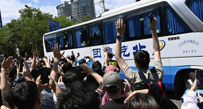 El astro arribó a tierra china en un vuelo privado acompañado por Ángel Di María, Rodrigo De Paul, Leandro Paredes, Enzo Fernández y Nahuel Molina, y según las imágenes difundidas por la prensa local fueron aplaudidos y vitoreados en el trayecto hacia el micro en el que abandonaron el aeropuerto.
