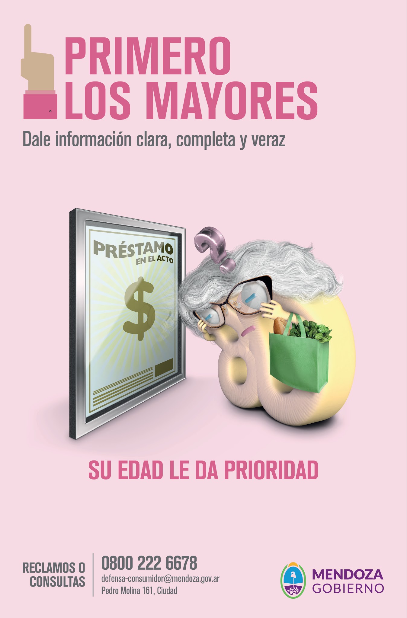 En coincidencia con el Día Mundial de los Derechos de los Consumidores (15 de marzo), la campaña mendocina se difunde en radio, vía pública y diarios locales. Es impulsada por el Ministerio de Gobierno, Trabajo y Justicia a través de la Dirección de Defensa del Consumidor (DDC), que está en sintonía con las acciones desplegadas por la Dirección de Atención de Adultos Mayores.