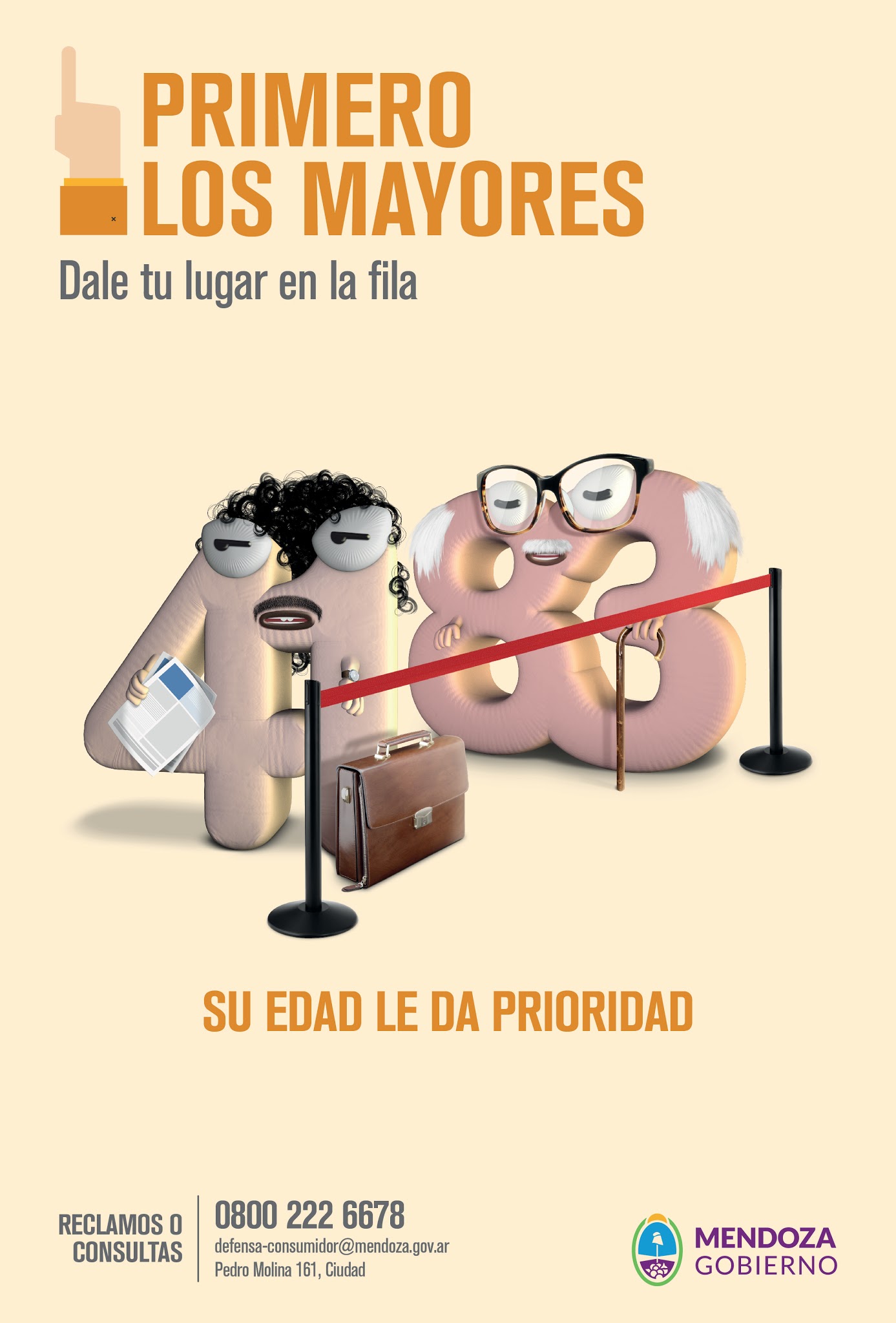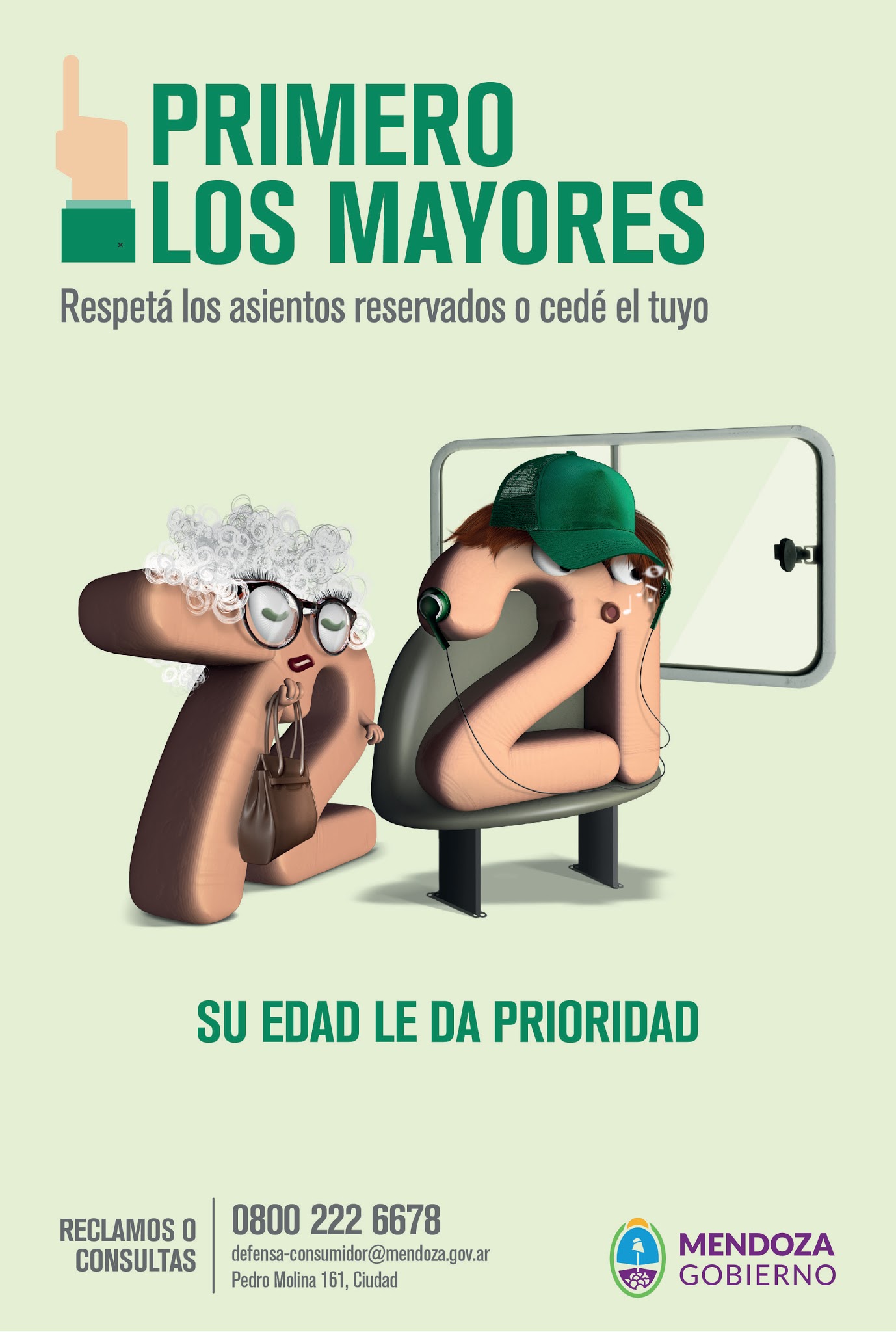 Hoy la población mayor de 60 años representa más del 10,5% de los habitantes de Mendoza. Los adultos mayores son más de 170.000 en nuestra provincia y varios tienen dificultades motrices y visuales, entre otras afecciones propias de la edad. Por eso la campaña de publicidad de bien público hace eje en limitar el tiempo de espera en negocios –bancos y supermercados, por ejemplo–, favorecer el derecho a la información y facilitar los traslados.