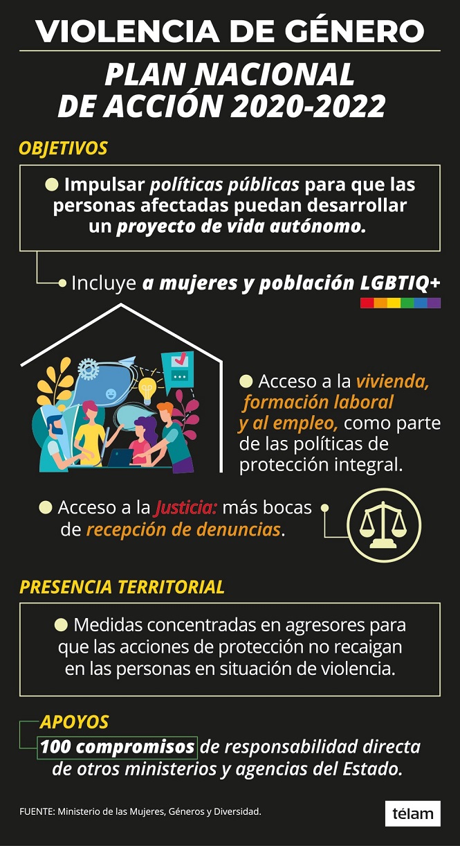 Además, el plan elaborado por el Ministerio de Mujeres, Géneros y Diversidad prevé la construcción de un mapa georreferencial de instituciones que atienden la temática y una mejora en los niveles de accesibilidad tecnológica y social, con la incorporación de intérpretes para personas no hispanohablantes.