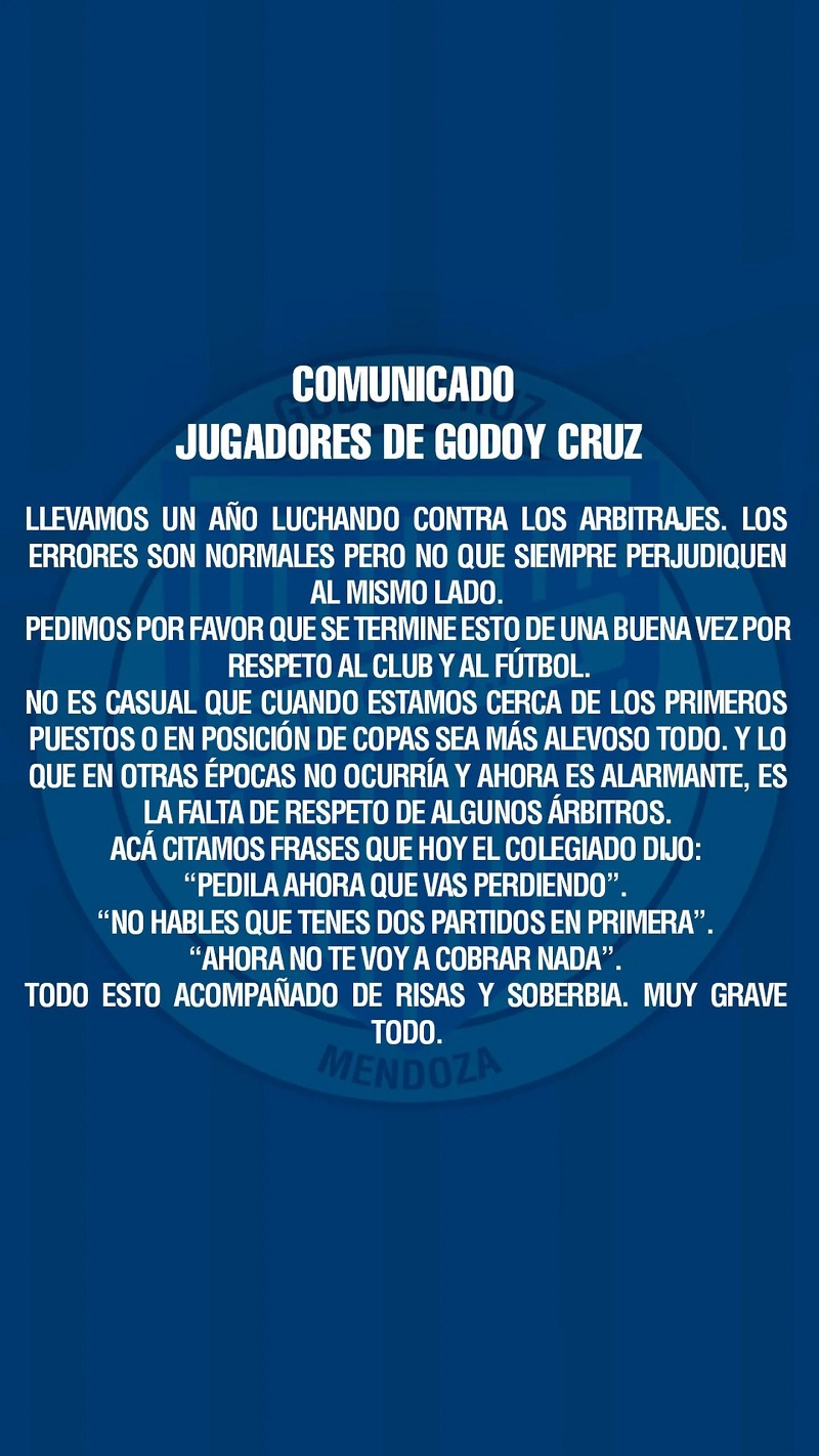 Diego Rodríguez, capitán del equipo mendocino, publicó un duro comunicado en el que manifestó algunos de los dichos agresivos por parte del árbitro. El Ruso lo acusó por haberle faltado el respeto a alguno de sus compañeros: “A uno de los chicos le dijo ‘pedila ahora que vas perdiendo’ y no está bien”.