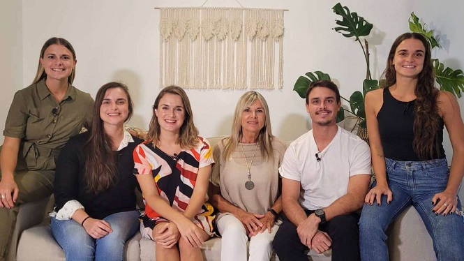 Franco, Sonia, Camila, Martina y Catalina (nacieron en ese orden) nos recibieron en la casa de la tercera de ellos. Cami es instructora de yoga e influencer. Tiene más de 30 mil seguidores en su cuenta de instagram @yoga.balance y desde ahí invita a sus seguidores a una transformación personal con “amor intención y movimiento”