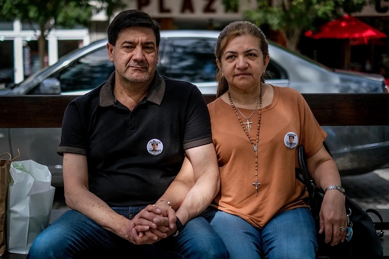 | Silvino Báez y Graciela Sosa, padres de Fernando, antes de presenciar la novena audiencia por el crimen de su hijo. (Foto: Télam/Diego Izquierdo) |