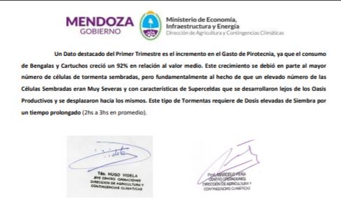 “Preocupa la escasez y calidad de bengalas y cartuchos que – en lo que va de la actual temporada – no pudieron enfrentar con éxito ninguna tormenta. Queremos que la provincia explique lo que verdaderamente está pasando. Valoramos el trabajo de los pilotos de la Lucha Antigranizo, pero acá hay algo que no está funcionando”, dijo Mauricio Sat.