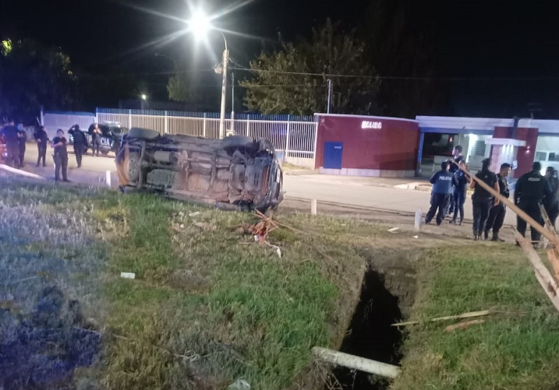 La rápida respuesta de las autoridades permitió rastrear el vehículo robado, equipado con un sistema de GPS, hasta su localización en las calles de Guaymallén. Tras una intensa persecución, que se extendió desde Costanera hasta el Acceso Este, la camioneta sustraída perdió el control y volcó en la Lateral Sur del Acceso Este, en la intersección con la Calle 25 de Mayo. Durante el accidente, uno de los ocupantes del vehículo terminó dentro de un zanjón, aparentemente sin signos vitales.