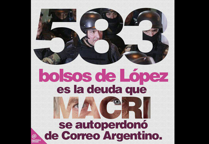 La información se conoció el miércoles, el mismo día en que el jefe de Estado cumplió 58 años, por lo que muchos de los “memes” refirieron al “autoregalo” que se hizo al condonar la deuda. Otra de las imágenes sostiene que el dinero en cuestión equivale a 583 bolsos de José López, el exsecretario de Obras Públicas durante el kirchnerismo detenido luego de esconder 9 millones de dólares en un convento de General Rodríguez.