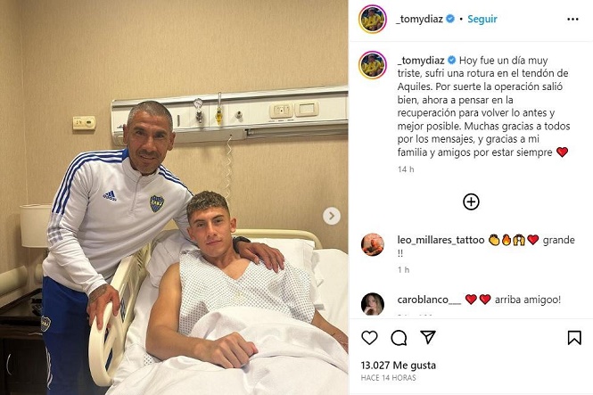 En la práctica del miércoles, Tomáz Díaz, hijo del “Cata”, fue ascendido de la Reserva para entrenar junto al primer equipo, donde sufrió la rotura del tendón de Aquiles de su pie izquierdo, lesión por la que ya fue operado y la cual le demandará unos seis meses de recuperación. Además, Norberto Briasco se desgarró el cuádriceps, y estará fuera de las canchas al menos 21 días. Todas estas bajas se suman a la de Marcos Rojo, quien continúa con la rehabilitación de la ruptura del ligamento cruzado anterior que sufrió en octubre del 2022 y comenzó a realizar trabajos de campo.