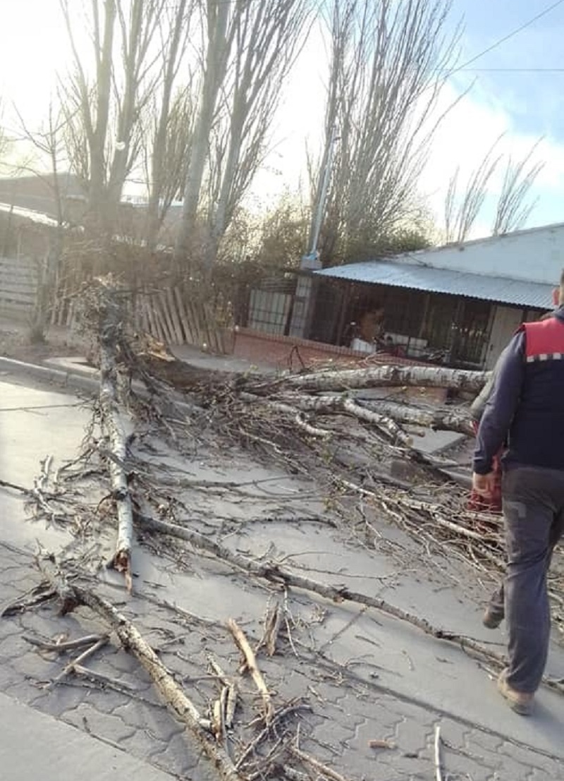 Malargüe: Árboles caídos, techos volados y postes derribados por el Zonda.