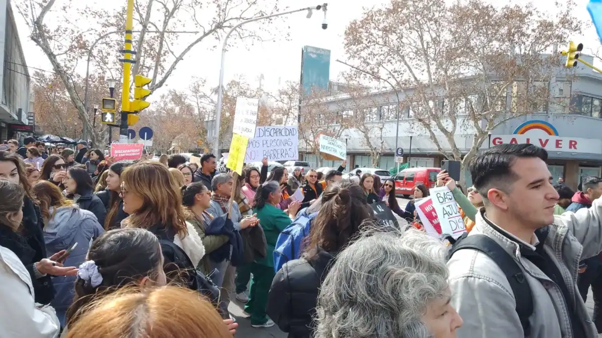 Organizaciones, prestadores y personas con discapacidad salieron a las calles de San Rafael este martes para visibilizar la crítica situación que atraviesa el sector y exigir que el Congreso revierta el veto presidencial a la Ley de Emergencia en Discapacidad.