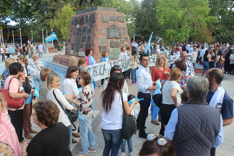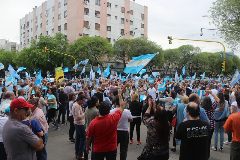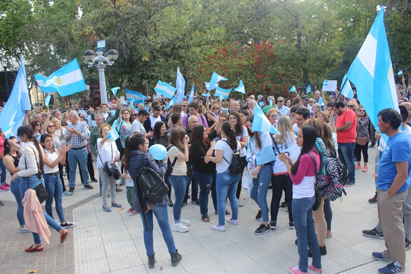 Al grito de “sí, se puede”, más de mil sanrafaelinos se reunieron cerca de las 17 en la plaza San Martín portando banderas argentinas, replicando lo que ocurría en otros puntos del país.