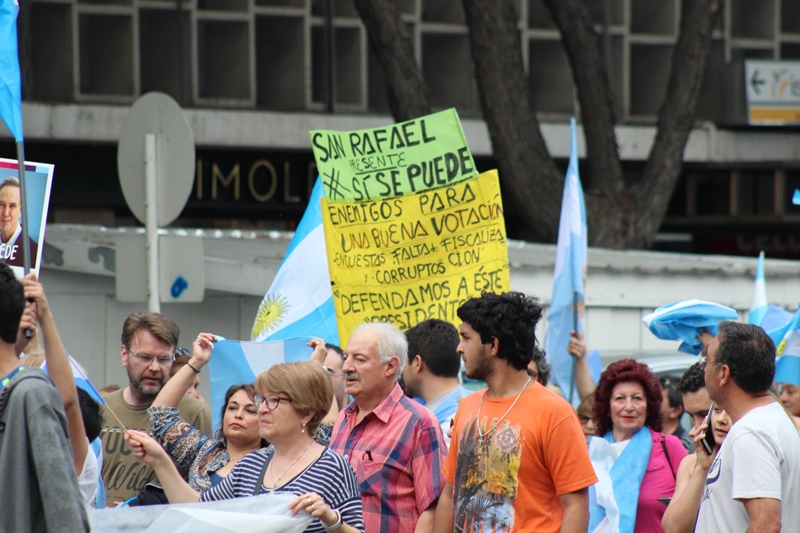 En el caso de San Rafael, los manifestantes –que al principio parecían pocos– se reunieron pacíficamente en la plaza San Martín; más tarde entonaron a capella del Himno Nacional Argentino y llevaron a cabo una vuelta completa a la plaza en caravana; luego se movilizaron hacia el Kilómetro Cero y allí hubo una nueva entonación del Himno; retornaron a la plaza San Martín para concluir allí la manifestación.