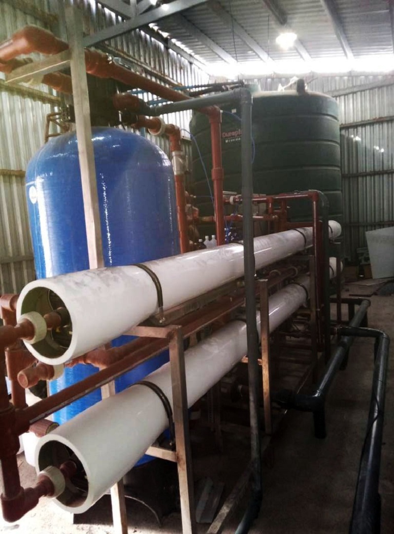 Es que en la planta potabilizadora del distrito se está terminando de colocar un equipo de ósmosis inversa para el tratamiento del agua.