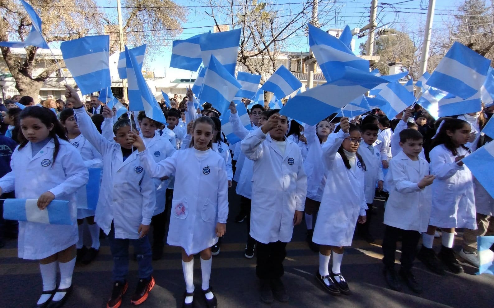 Más de mil banderitas tiñeron de celeste y blanco las calles del B° Unimev