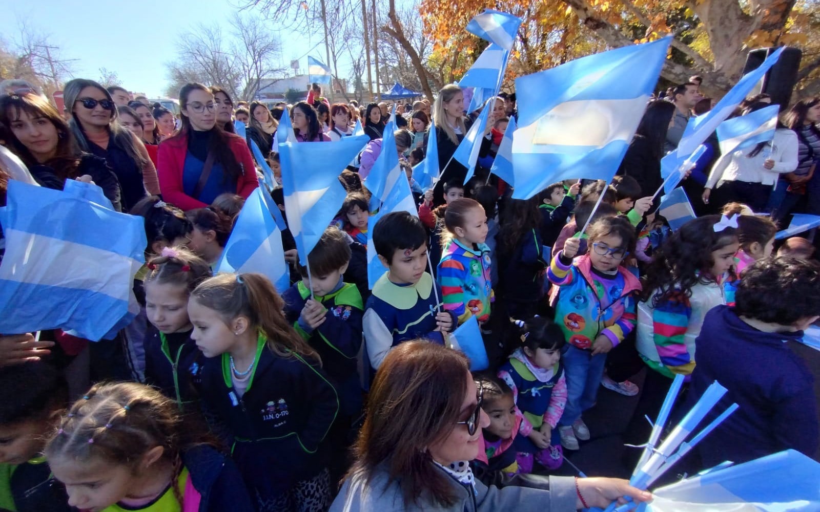 Para cerrar todos los presentes ondearon juntos sus banderas en una marea blanquiceleste y bien patriótica.