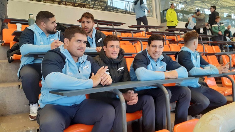 | Los Pumas que no estuvieron en cancha miraron el partido junto al palco de prensa |