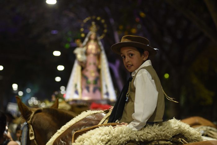 La Federación Gaucha de Mendoza, presidida por José Luis Reginato y por los abanderados de la banderas nacional, provincial y el estandarte, siguieron su paso. Ellos fueron los encargados de custodiar a la Virgen de la Carrodilla, que precedió el carro con la reina y virreina nacionales de la Vendimia 2017. Victoria Colovatti, quien representó a Maipú, y Romina Méndez Pattaro, de San Carlos. Hoy dejarán sus coronas en manos de nuevas soberanas.