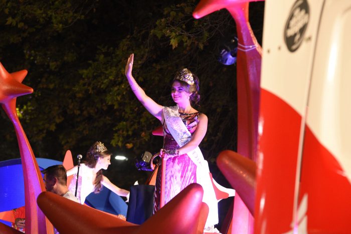 Antonella Curati, reina electa en Vendimia de mi pueblo, representa al departamento de Junín y desfiló en el carro que buscó expresarse a través del arte y la luz, generando planos y transparencias; apoyando su argumento en la idea de la Fiesta Nacional de la Vendimia 2018.