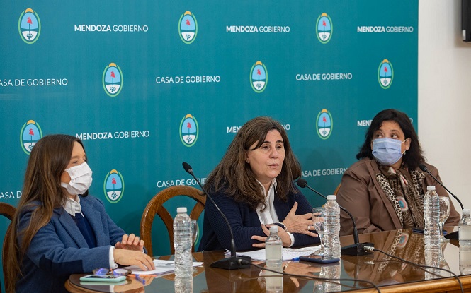 La ministra de Salud, Desarrollo Social y Deportes, Ana María Nadal; la subsecretaria de Planificación de Salud, Mariana Álvarez, y la directora de Inmunizaciones, Iris Aguilar, brindaron esta mañana una conferencia de prensa con detalles del plan de vacunación que ha cambiado su metodología.
