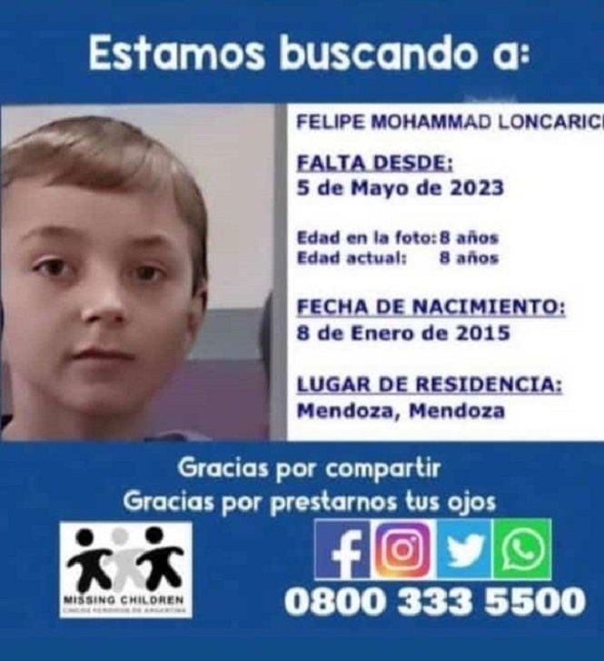 El pequeño, identificado como Felipe Mohammad Loncarich, fue visto por última vez el viernes 5 de este mes, de acuerdo con la presentación que se realizó en un Juzgado de Familia.