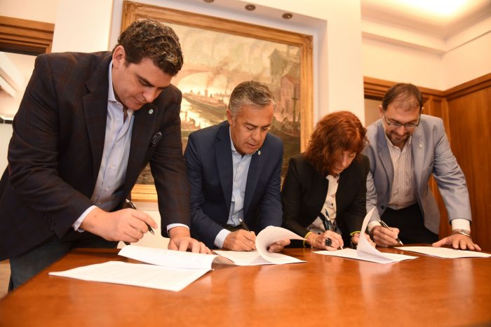 La rúbrica se realizó esta mañana en el cuarto piso de Casa de Gobierno. Fue firmada por el mandatario provincial; la integrante del directorio del Banco Nación, Ercilia Nofal; el ministro de Economía, Infraestructura y Energía, Martín Kerchner y el titular del Instituto Provincial de la Vivienda (IPV), Damián Salamone.