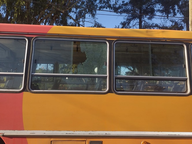 Los malvivientes bajaron del colectivo y comenzaron a arrojar piedras para cubrir el escape. Esto provocó la rotura de algunos cristales.