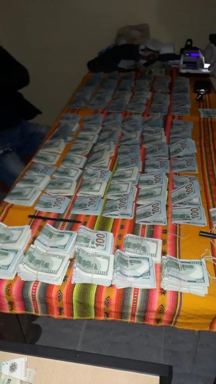 Al momento de la inspección, observaron una bolsa de nylon blanca debajo del asiento del conductor, que contenía 55.540 dólares estadounidenses, 4.600 euros, 300 reales y 7.600 pesos argentinos. Era solo el comienzo.