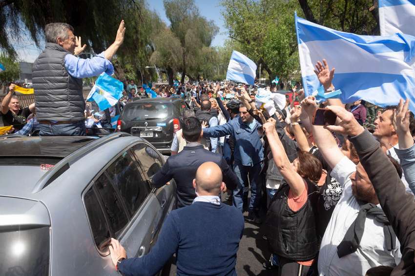Entre las pancartas se leían frases como “gracias señor Cornejo por todo lo que hizo por Mendoza”, “sí se puede”, “nos une la honestidad”, “somos la banda de la honestidad”, “bienvenido a Mendoza libre de K” y “no al populismo”, entre otras.