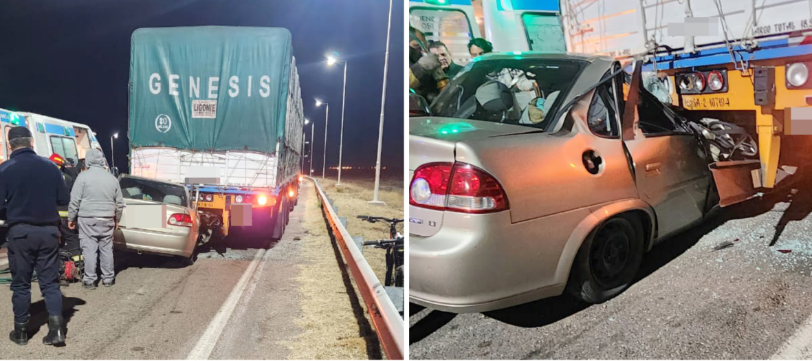 Según los primeros informes, el conductor de un Chevrolet Classic color champagne impactó contra la parte trasera del acoplado de un camión que circulaba en la misma dirección, por causas aún bajo investigación.