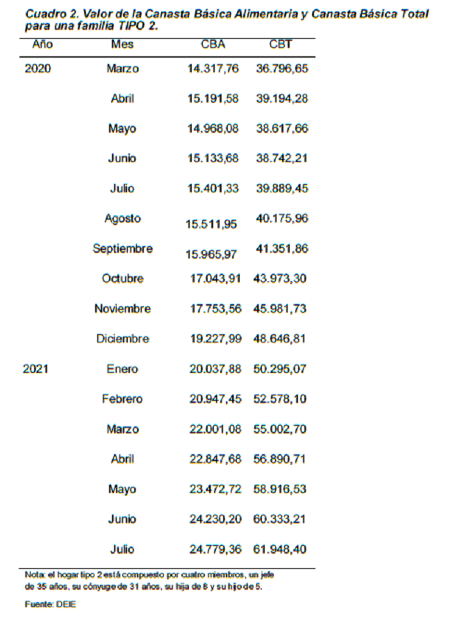 La Dirección de Estadísticas e Investigaciones Económicas (DEIE) de la provincia, dio a conocer el índice de la canasta básica de alimentos del mes de julio de 2021.