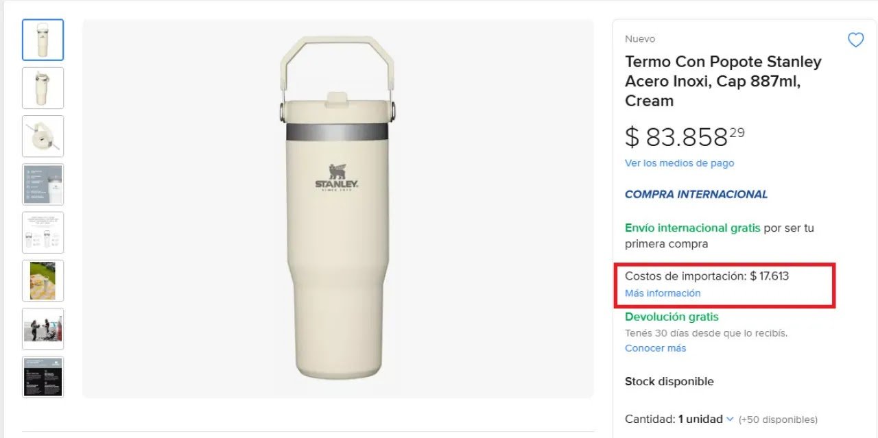 Por ejemplo, si se busca el clásico termo Stanley, el anterior filtro permitirá separa los resultados internacionales de los que ofrecen los vendedores locales. Algunos usuarios señalan en las redes que existen diferencias de precios notables a favor de los productos que se ofrecen desde Estados Unidos.