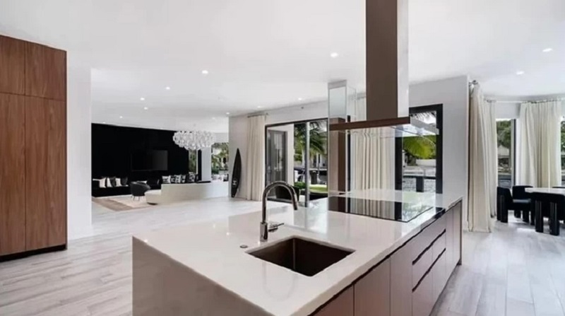 Según compartió The Real Deal, la propiedad, construida en 1988 y remodelada en el 2000, posee alrededor de 3.200 metros cuadrados, dos muelles de 51 metros, una pileta frente al mar, un gimnasio, spa y una cocina italiana.