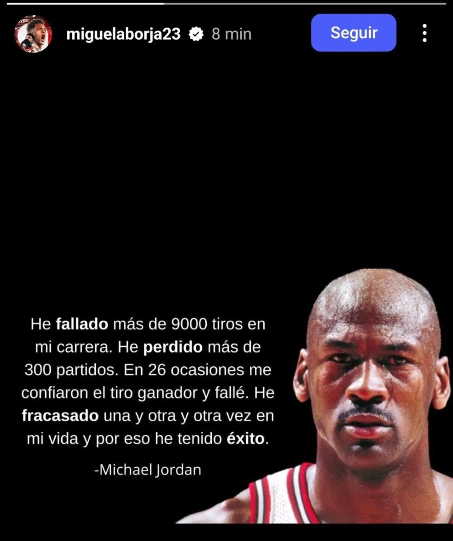 El Colibrí, una vez terminado el partido, utilizó una icónica frase de Michael Jordan para responder la reprobación por parte del público de River. “He fallado más de 9000 tiros en mi carrera. He perdido más de 300 partidos. En 26 ocasiones me confiaron el tiro ganador y fallé. He fracasado una y otra vez en mi vida y por eso he tenido éxito”, se puede leer en la publicación que hizo el colombiano.