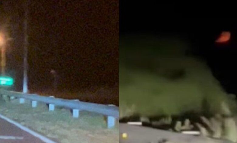 Un video muestra un increíble hallazgo nocturno en plena ruta. Los testigos no lograron identificar las figuras blancas que aparecieron junto al camino.