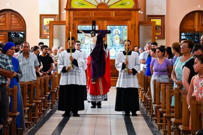 “No se trata de sufrir por sufrir, sino que se trata de ver cómo asumimos y abrazamos el dolor, y la respuesta es clara, aunque a veces nos resulte misteriosa y difícil hacerla vida. La respuesta es cómo lo hizo Jesús, porque desde que Jesús se subió a la cruz, más allá del dolor y del sufrimiento, la cruz tiene sabor a redención. Llevar la cruz cada día como discípulos de Jesús, sabiendo que de ella nace nuestro discipulado, será ponerle el hombro a los problemas de nuestra vida, hacerle frente, tomar nuestras vidas con responsabilidad y no pedir mágicamente que las preocupaciones desaparezcan, sino asumirlas con la actitud con la cual Jesús se abrazó a la cruz.